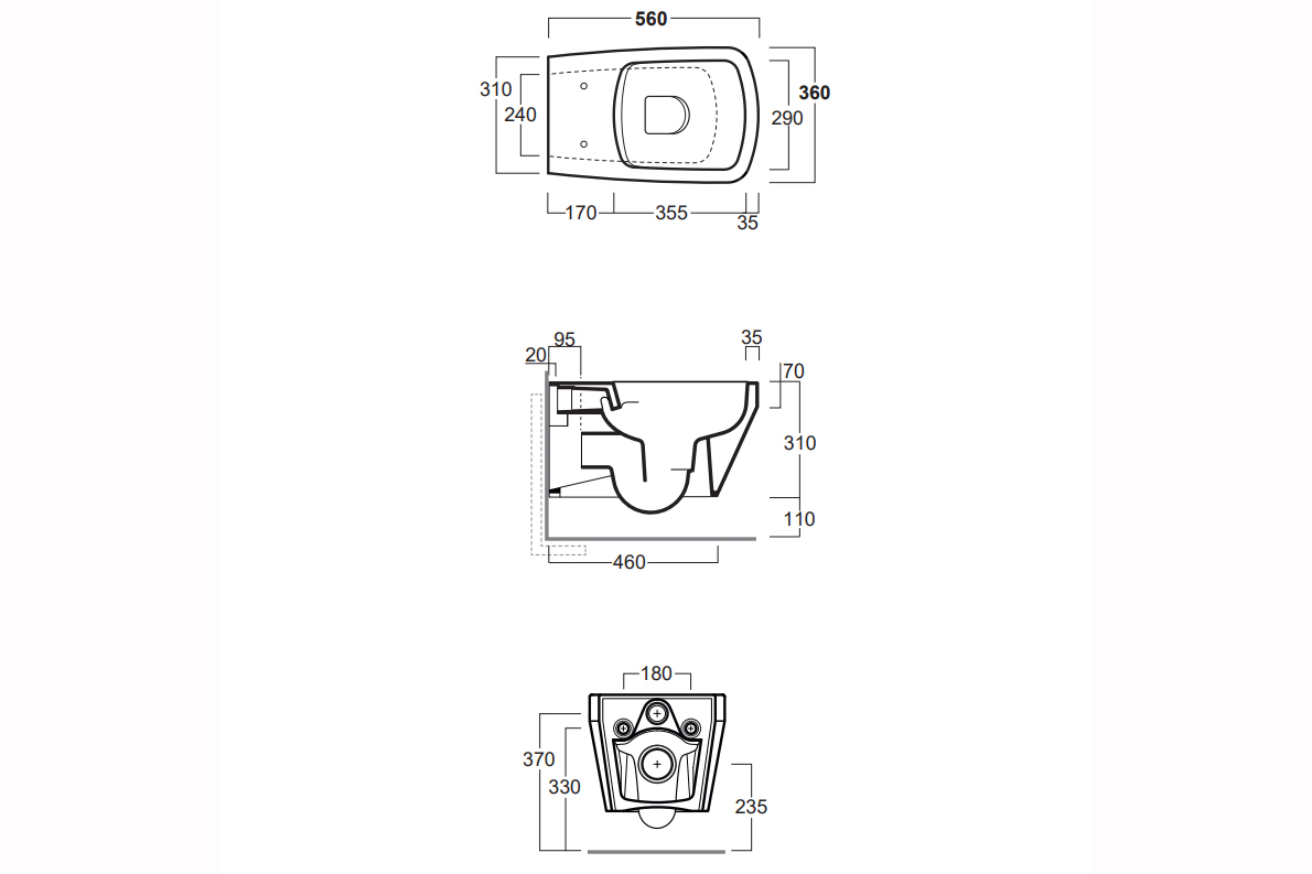 Конзолна тоалетна Baden&Baden чиния с „Rimless“ технология. Комплект с монтажен комплект F85 и със седалка и капак с плавно затваряне BB004.