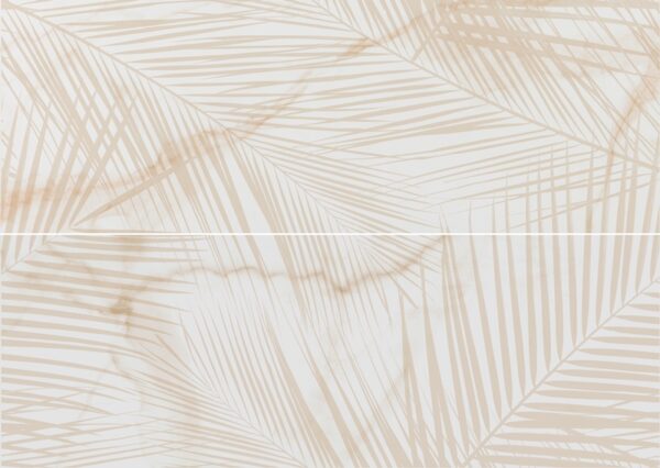 В светлината на прожекторите се завърна мраморът! Серия за баня ESSENTIAL GOLD пресъздава красотата на този естествен камък, предлагайки оригинална композиция с флорални декори и златни акценти. Меките тонове и деликатните палмови клонки правят пространството нежно и стилно.