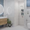 Изумрудено зеленият цвят на серия DEMOS GRIS разчупва умело сивата тоналност и внася динамика в банята!