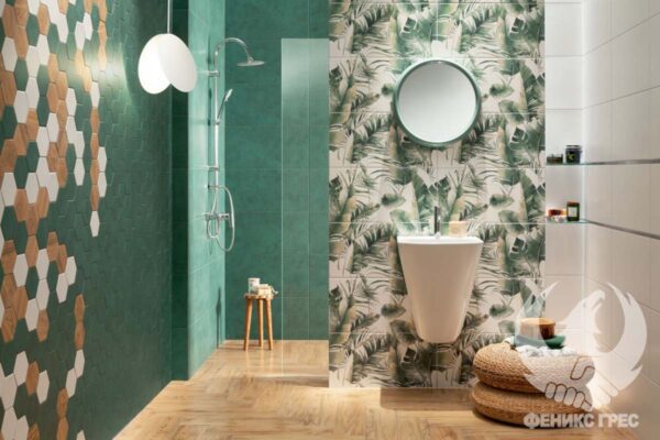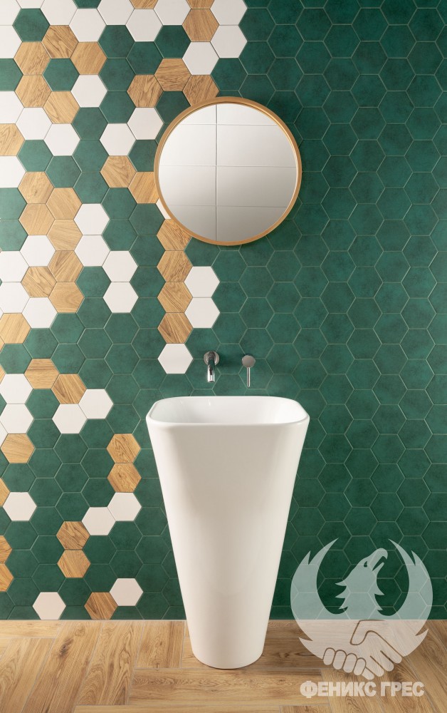 Зеленият цвят носи спокойствие. Тъмните наситени нюанси се съчетават чудесно с дървесни тонове,а хексагоналните плочки в маслено зелено са перфектно решение за любителите на модерни пространства.Серия за баня BURANO GREEN впечатлява с перфектна хармония между отделните елементи. Свежо, уютно, модерно!