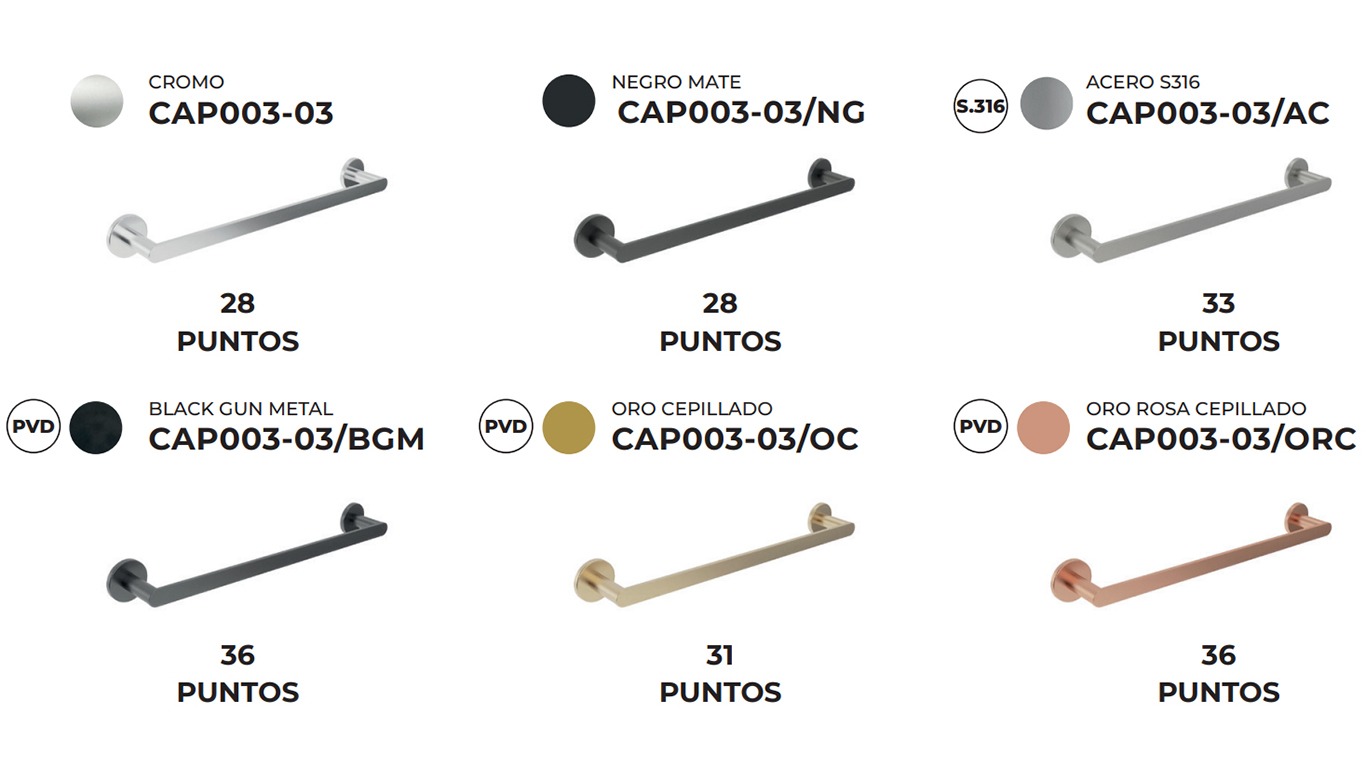 | Цвят | Acero, black gun metal, black matt, oro cepillado, oro rosa cepillado, хром |