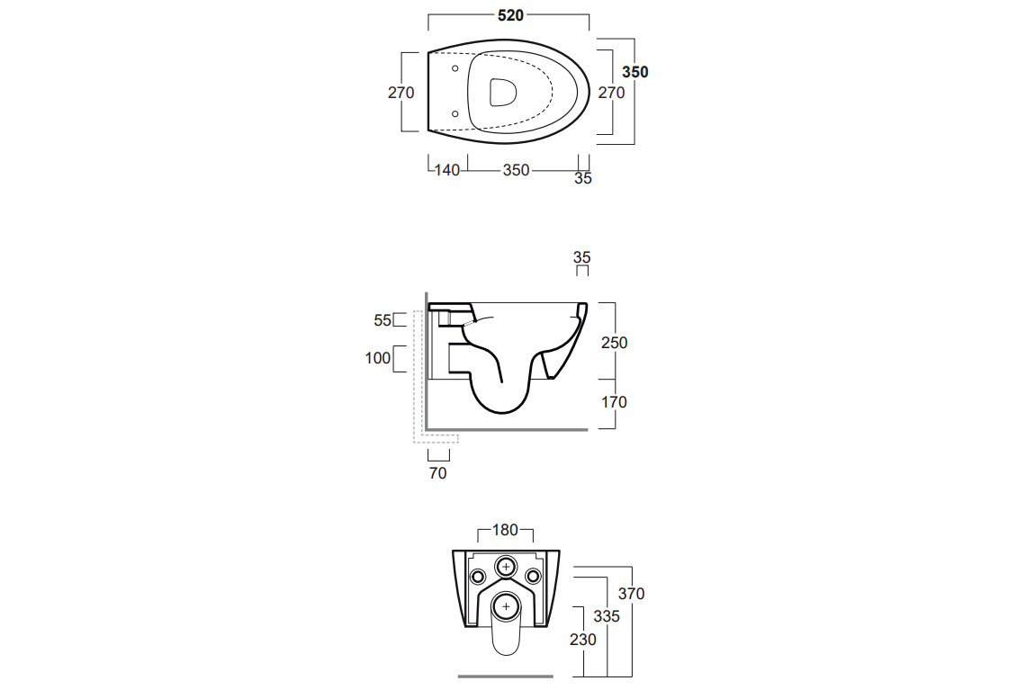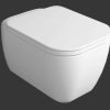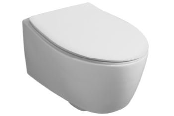 Конзолна тоалетна чиния LFT Spazio с „Rimless“ технология. Комплект с монтажен комплект F85 и със седалка и капак с плавно затваряне.