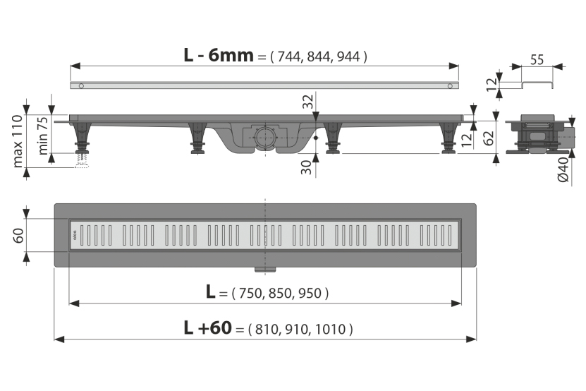 Линеен подов сифон APZ10-550mm