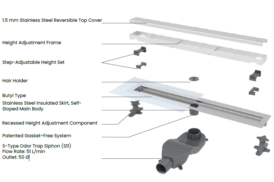 Линеен подов сифон с две лица Premium Linear S11