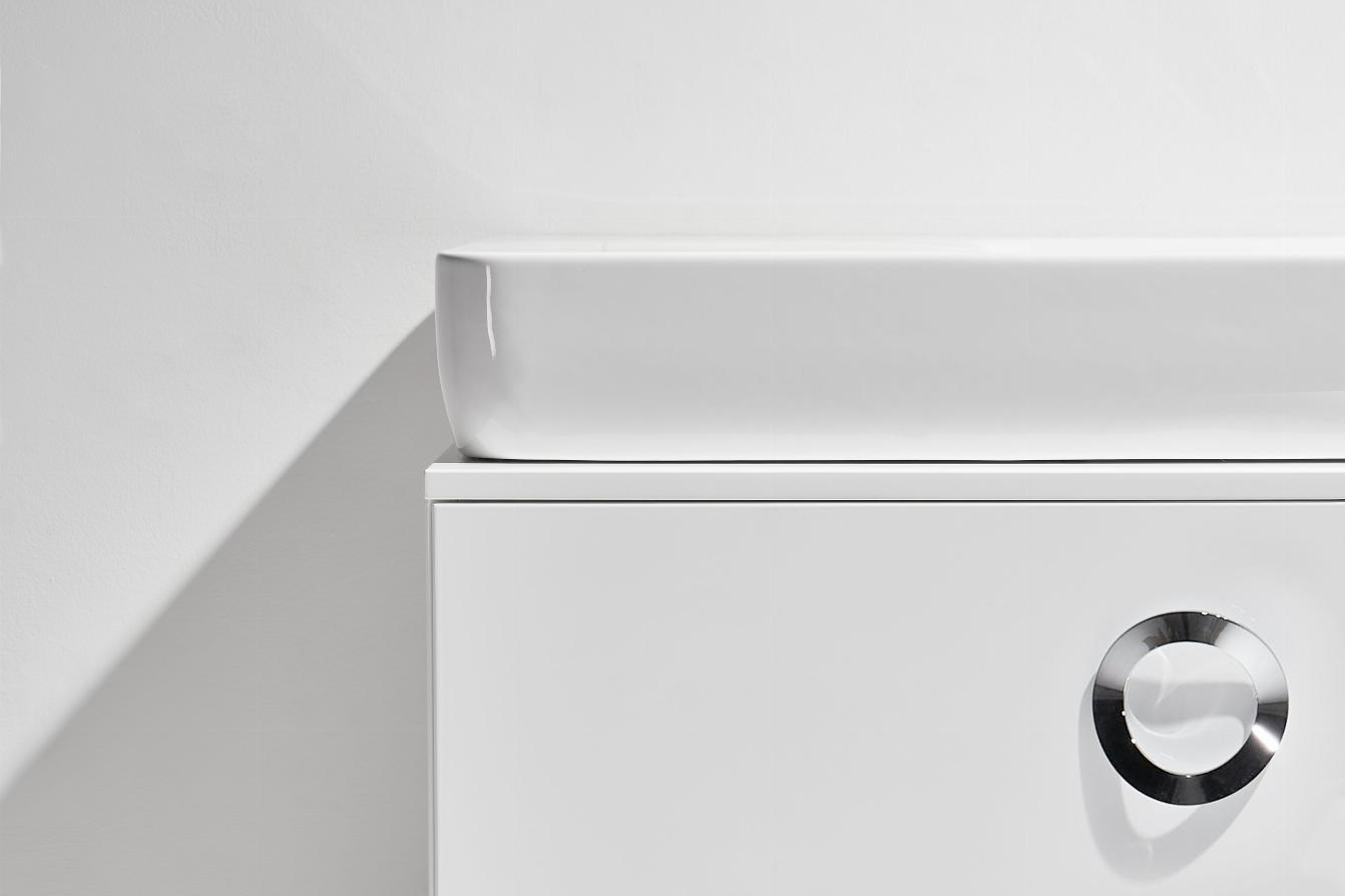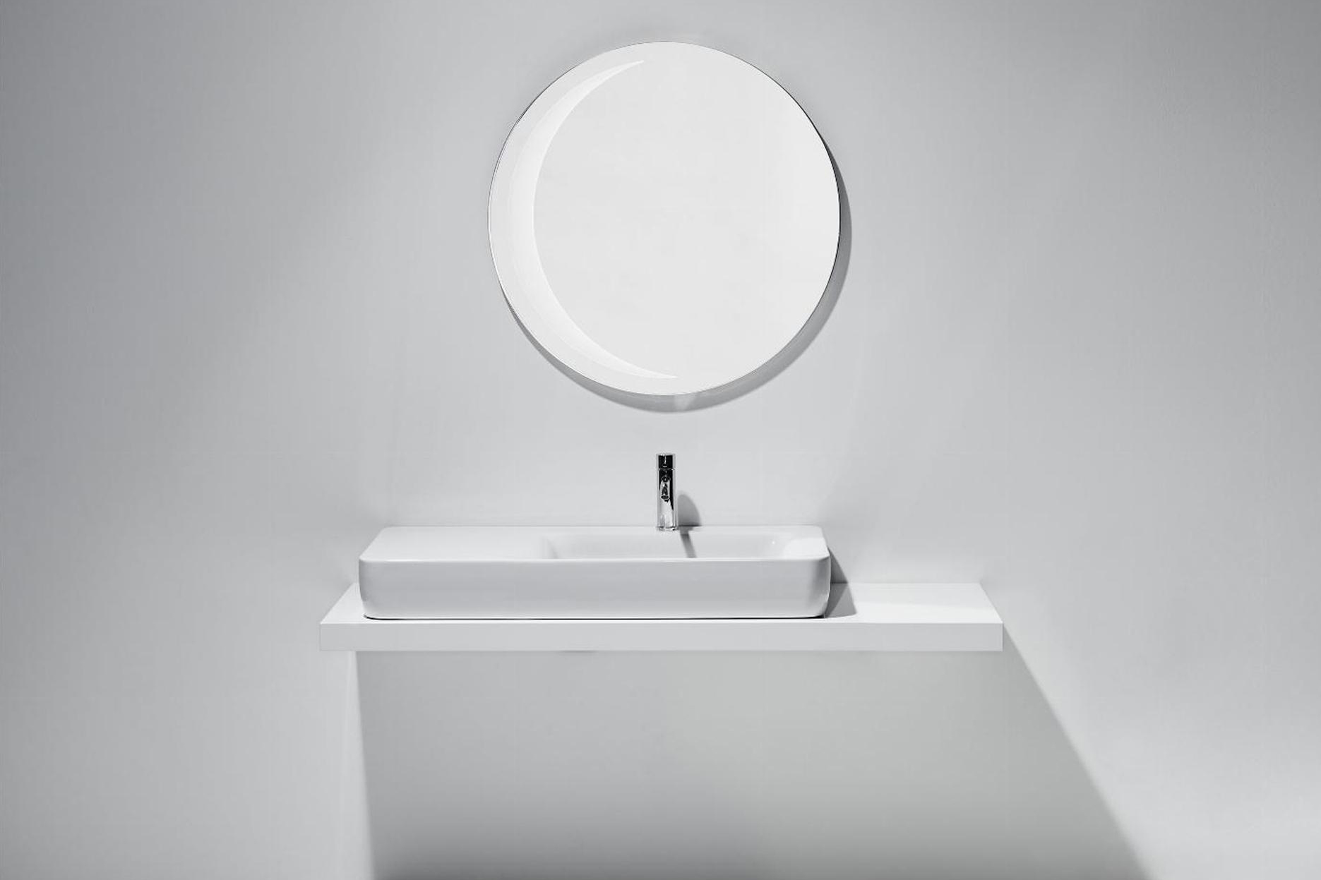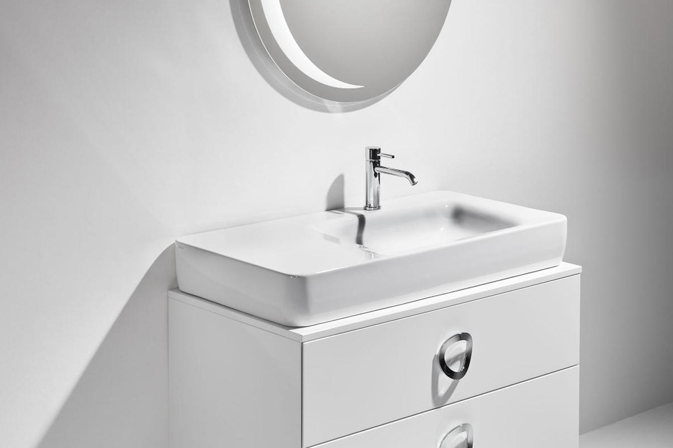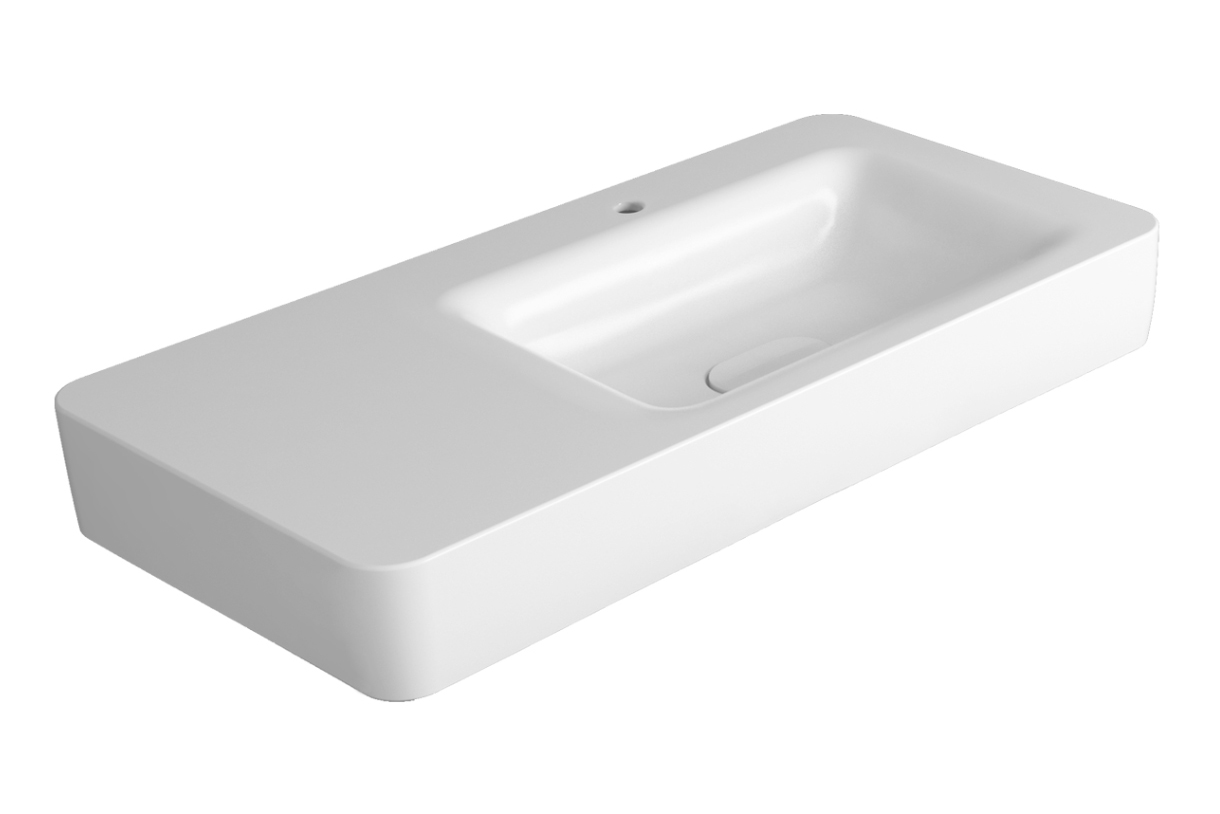 Мивка за плот или за стенен монтаж с единичен отвор за смесител. В комплект с керамичен капак за сифон PLHE. Дизайн с използването на меки и плавни линии с амбициозната цел да трансформира сложността на нашето време в простота.