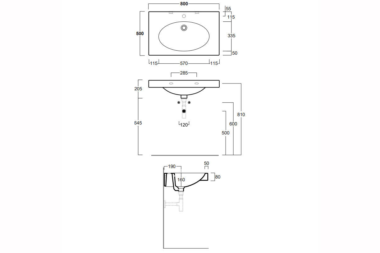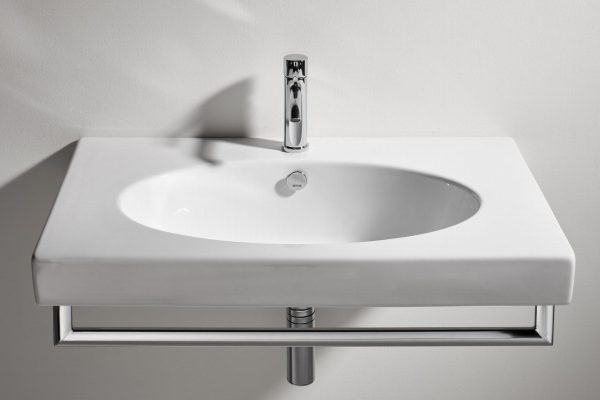 Правоъгълна мивка за стенен монтаж LFT Spazio LFT 44, предварително перфорирана с единичен отвор за смесител.