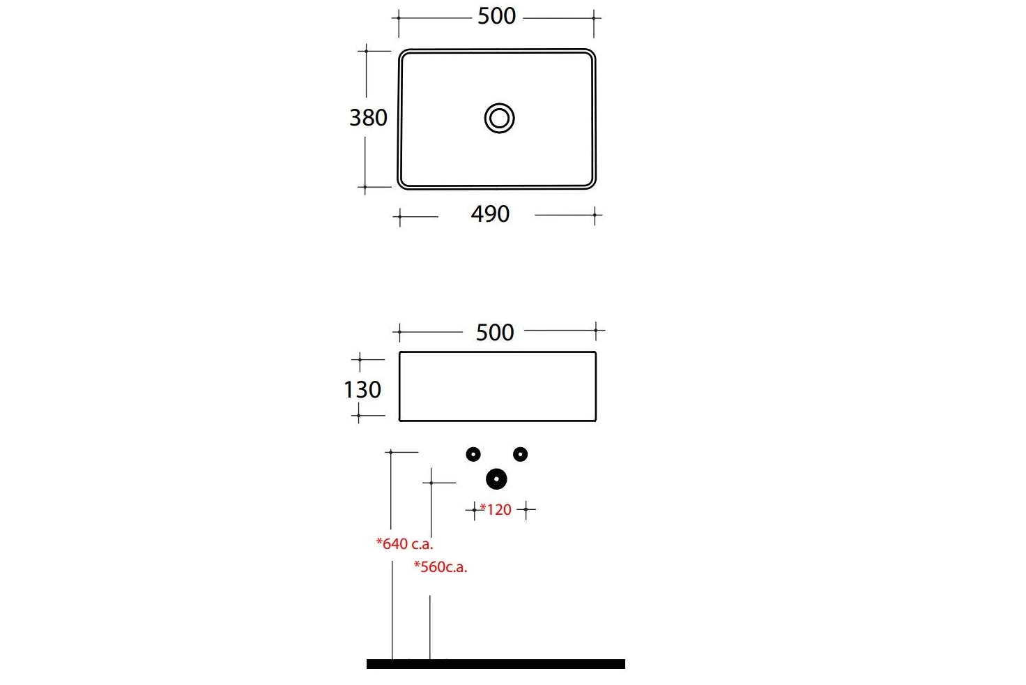 Правоъгълна мивка за плот без сифон Tokyo бял гланц.