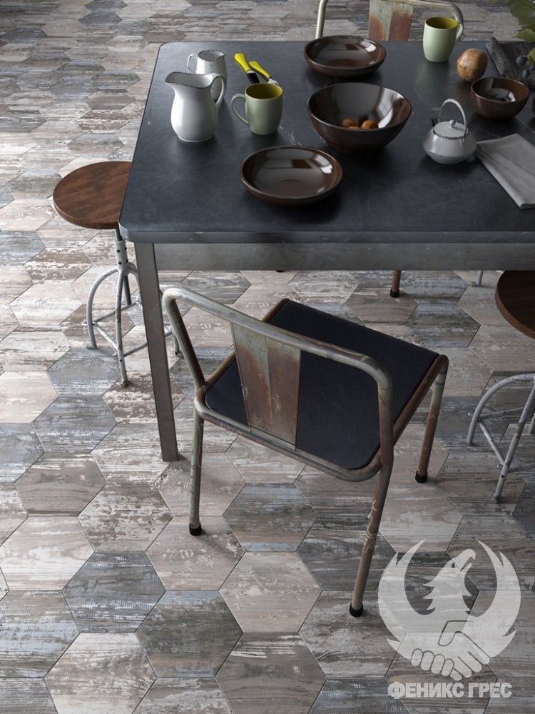 Шестоъгълните форми този път със съвсем различен облик! Матиран гранитогрес NORDIC впечатлява с различните си лица, създаващи неповторимо оригинален интериор. На стената или пода – изберете сами!