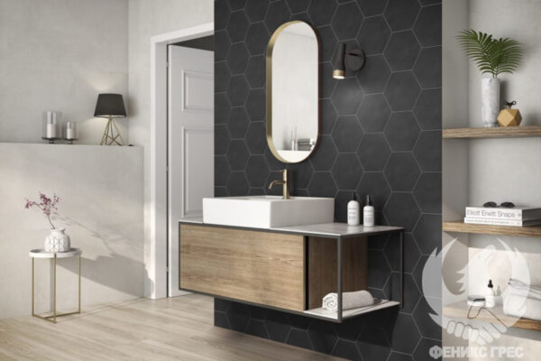 Шестоъгълната форма на плочките сама по себе си внася артистичност в интериора. Семпли цветове,сатенирана повърхност и оригинална форма, това е серия Mayfair.
