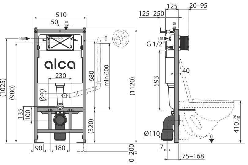 - Инсталационна дълбочина 1125 мм