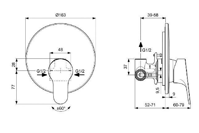 47 mm керамичен затварящ механизъм с вграден ограничител на топла вода;