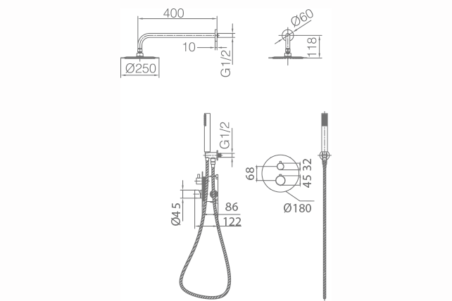 Вградена термостатна душ система Genova – луксозен и практичен избор за вашата баня. Genova е със специална антиваровикова система, предотвратяваща натрупването на варовик и замърсявания. Комплектът включва смесител, душ пита, рамо за душ пита, подвижен душ с държач и шлаух.
