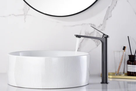 Milos висок смесител за купа е стилен и функционален избор , придавайки модерен вид и удобство при използване.